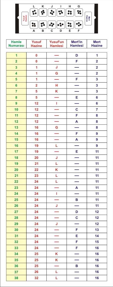 Yusuf İle Mert Arasında Oynanan Mangala Oyunu Hamleleri: